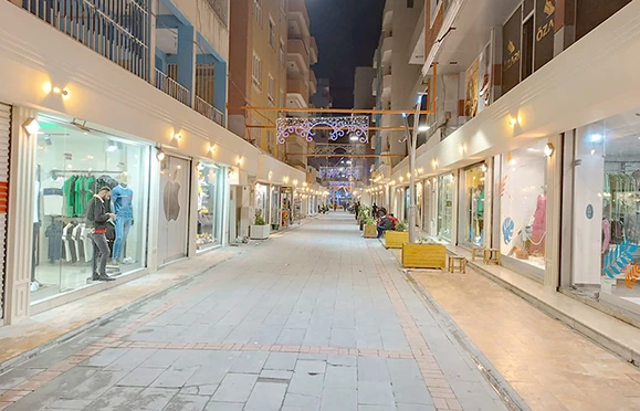 Yaklaşık 370 metre uzunluğundaki ana ve bağlantılı sokaklarda 160 dükkanın dış cephesi; tabelaları ve aydınlatma aplikleriyle birlikte tamamen yenileniyor.