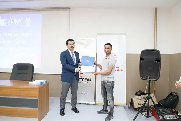 Sertifika takdim törenine Kaymakam Şenol Öztürk, Hasankeyf Belediye Başkanı Abdulvahap Kusen ve Batman İl Kültür Turizm Müdürü Mehmet İhsan Aslanlı katıldı.