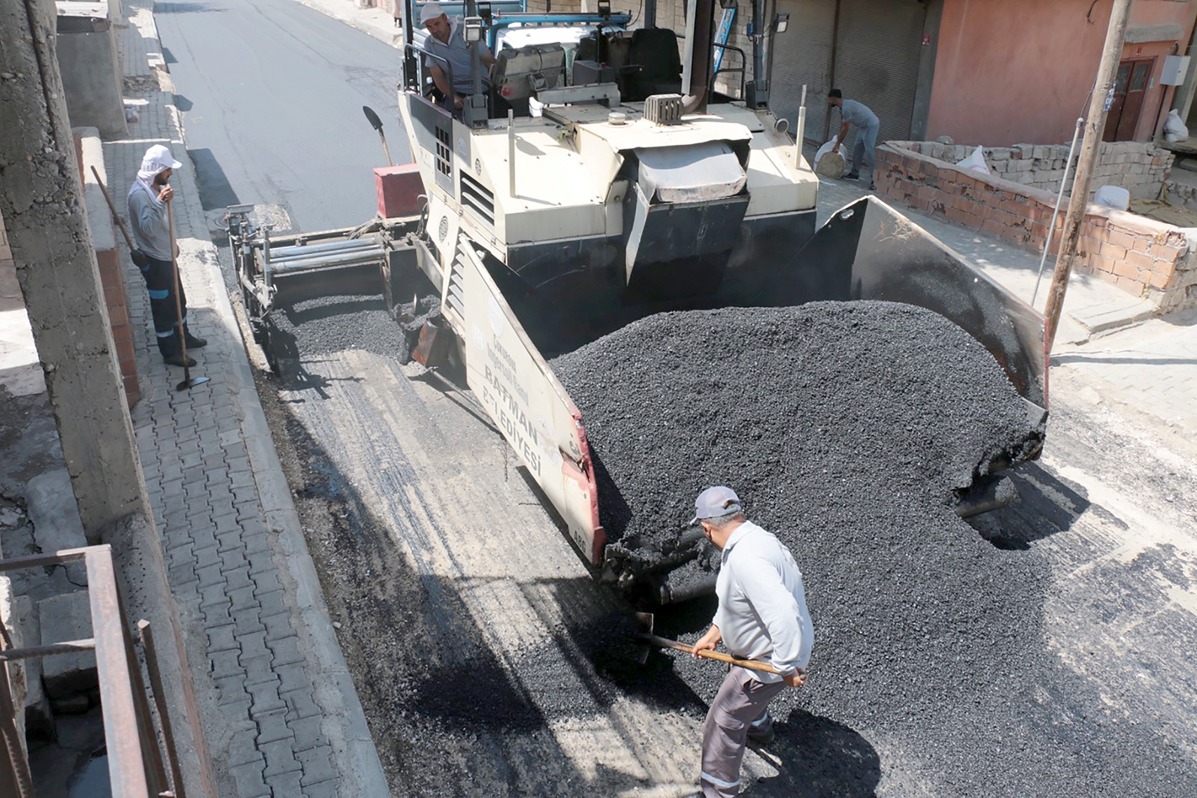 Ülke genelinde hissedilir derecede artan hava sıcaklığına aldırış etmeyen Batman Belediyesi asfalt ekibi, hazırlanan program çerçevesinde 160 santigrat derecedeki asfaltı ihtiyaç duyulan alanlara uyguluyor.