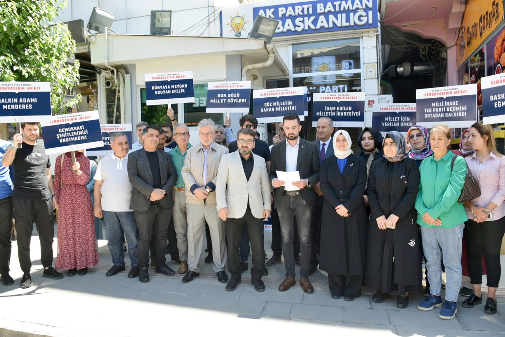 Şeker “Türkiye birçok kez darbelere maruz kalmıştır. Bu darbeler milletimizin bünyesindeki demokrasi, ekonomi, insan hakları, sivil ve sosyal hayat unsurlarına zarar vermiştir. 27 Mayıs Darbesi, milli irade ile arasına perde çekenlerin demokrasiye, vicdanlara, hukuka ve insanlığa yönelik ihaneti olarak hafızalarımıza kazınmıştır. Vesayetçi odakların varlığını devam ettirerek en son 15 Temmuz’da da benzer bir senaryoyu devreye sokmaya çalıştıklarını ancak aziz milletimiz darbeler ve darbeciler karşısında liderimiz Recep Tayyip Erdoğan’ın kararlı duruşuyla bu kez millet iradesi üzerinde tahakküm kurmak isteyenlerin oyunlarını bozmuştur. Demokrasimize ve irademize düşman olan şer odaklarını hiçbir zaman unutmayacağız” dedi.