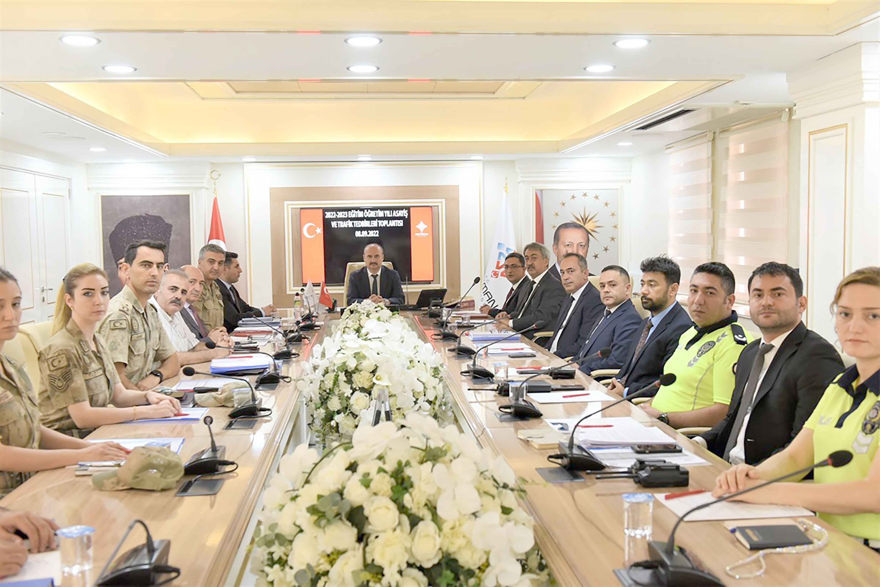 Yeni eğitim-öğretim döneminde çocuk ve gençlerimizin eğitim ve öğretimini güvenli bir ortamda sürdürebilmesi amacıyla yapılan toplantıda; çocuklarımızı başta uyuşturucu maddeler olmak üzere terör nitelikli oluşumlar ile narkotik, asayiş suçlarından uzak tutulması ve korunması, yolculuklarını huzur ve güven içerisinde yapmalarının sağlanması, okul çevresinde ve dışında bulunan mekanlar göz önünde bulundurularak denetim faaliyetlerinin artırılması, servis sürücülerinin dikkat ve hassasiyetlerini en üst düzeyde tutarak trafik kazalarının önlenmesi için yürütülecek çalışmalar görüşüldü.