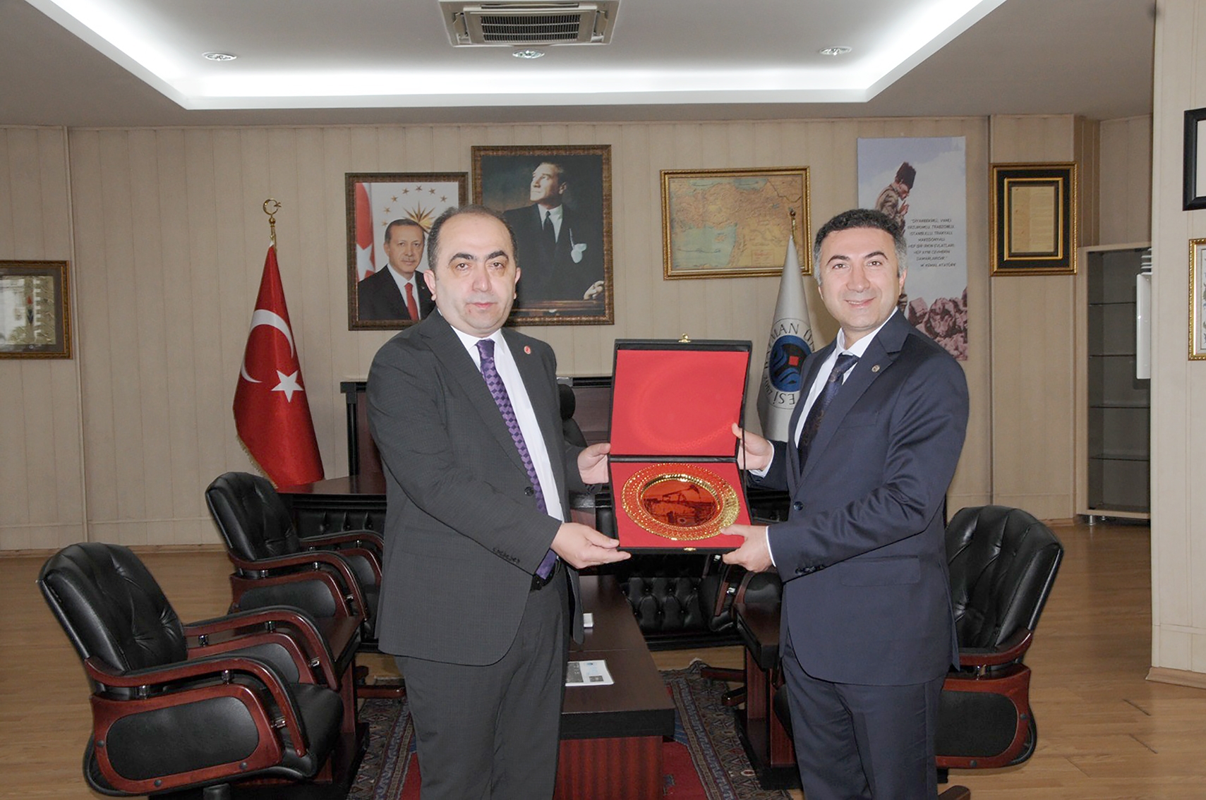 Büyük Taarruzun 100. Yıldönümü için yurt genelinde planlanan etkinliklerin ilkinin yapıldığı ‘Askeri, Siyasi ve Ekonomik Yönleriyle Büyük Zaferin 100. Yılı Uluslararası Sempozyumu’na katılmak üzere Batman Üniversitesi’ne gelen Atatürk Araştırma Merkezi (ATAM) Başkanı Doç. Dr. Yüksel Özgen, Üniversitemiz Rektörü Prof. Dr. İdris Demir’i ziyaret etti.