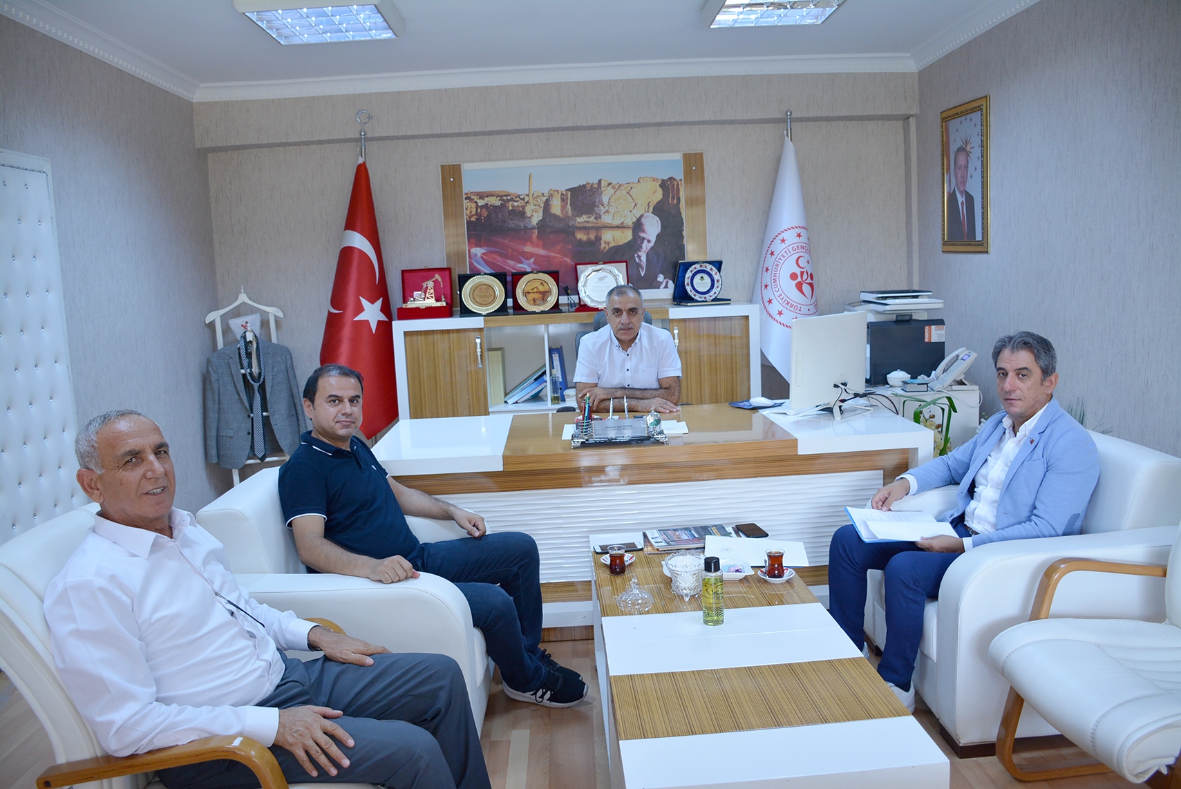 Batman’da Gençlik ve Spor İl Müdürü Mehmet Şafi Özperk’i makamında ziyaret eden, Prof. Dr. Nihat Gültekin il genelindeki spor tesisleri, gençlik merkezleri, Yurt binaları ve önümüzdeki süreçte yapılması planlanan yeni yatırım ve projeler hakkında bilgi aldı.