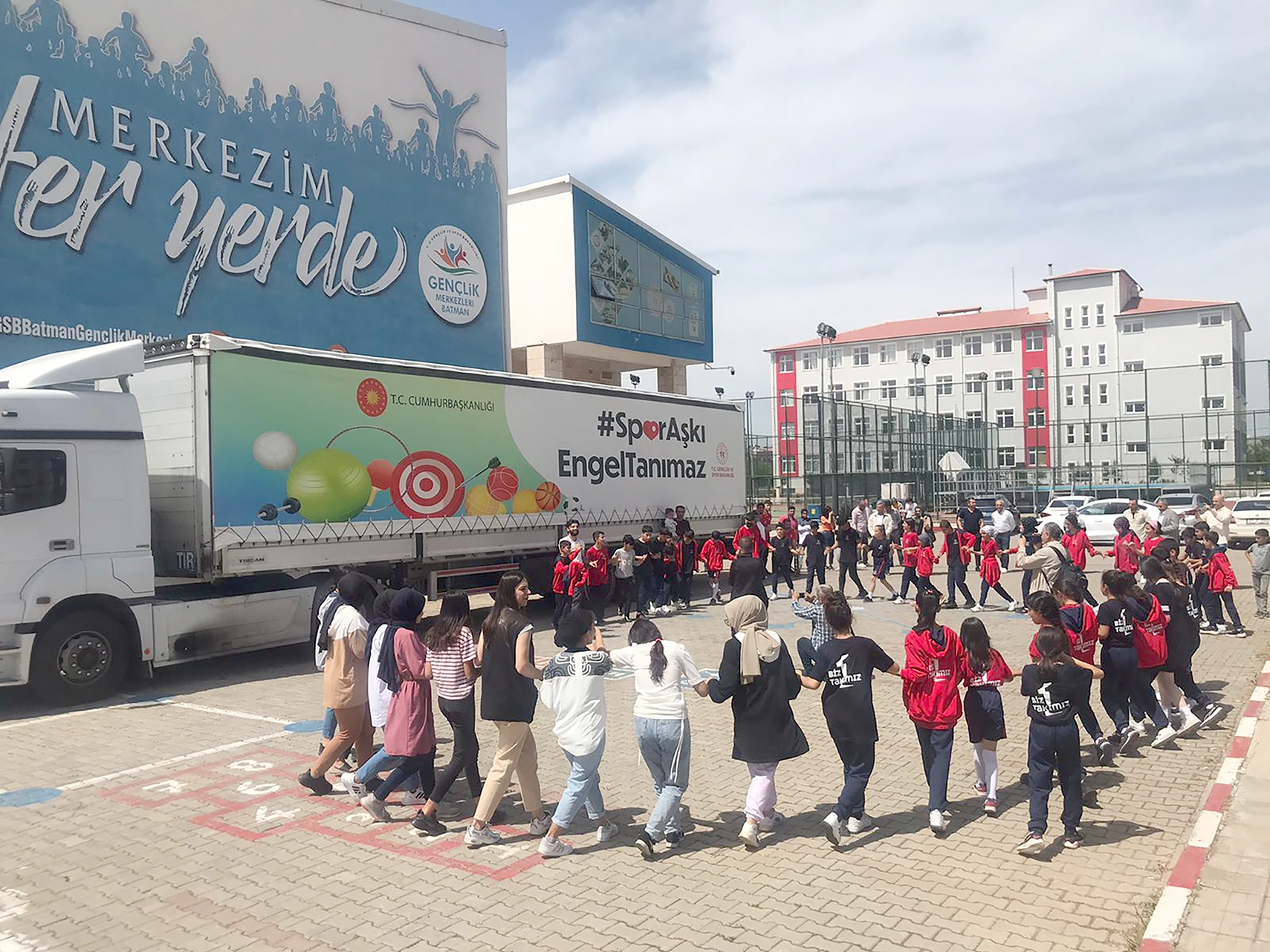 Batman'a ulaşan ve içinde spor malzemesi bulunan tır, Gençlik ve Spor İl Müdürü Mehmet Şafi Özperk, Şube Müdürleri, çocuklar, gençler ve engelliler tarafından karşılandı. Halay çekilerek teslim alınan spor malzemeleri, 3 özel eğitim kurumunda özel gereksinimli öğrencilere dağıtılacak.