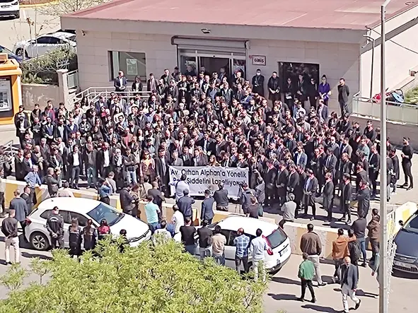 Adliye Binası önünde ‘polis şiddetini kınıyoruz’ yazılı pankartlar açıldı. Diyarbakır Barosu Başkanı Nihat Eren ve Siirt Barosu Başkanı Kenan Bilge’nin de katıldığı eylemde konuşma yapan Batman Barosu Başkanı Av. Erkan Şenses “Batman Adliyesi’nde bir polis memurunun adliyeye getirdiği bir şüpheliye kötü muamelede bulunması ve şüpheliyi ters kelepçe ile bekletmesine itiraz eden meslektaşlarımızdan Av. Orhan Alphan görevi başında polis saldırısına uğramıştır.