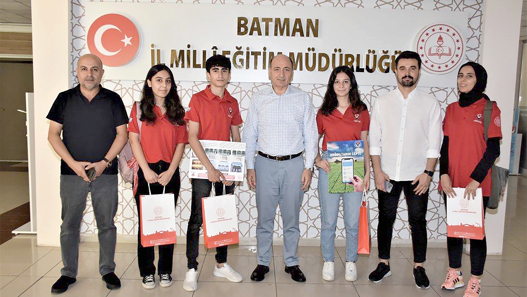 TEKNOFEST 2022 etkinlikleri kapsamında 22-24 Temmuz 2022 tarihleri arasında Giresun ilinde düzenlenen 2204-D Lise Öğrencileri İklim Değişikliği Araştırma Projeleri Yarışması'nda finale katılan Batman Türk Telekom Anadolu Lisesi öğrencileri Bilal Çelik, Muhammed Arda Avcı, Havin Arı, Ayşe Kan ve Ezgi Dilay Sanlı İl Milli Eğitim Müdürü Mahmut Kurtaran'ı ziyaret ettiler.