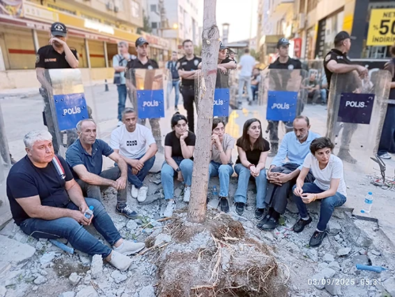 Akşam saatlerinde başlayan ağaç sökümüne, Çevre Gönüllüleri Derneği Başkanı Hasan Argunağa ve vatandaşlar tepki gösterdi. İş makinelerinin önüne geçilmesiyle çalışmalar kısa süreliğine durduruldu. Daha sonra DEM Parti il eş başkanları ve partililer de bölgeye gelerek söküm çalışmalarına karşı çıktı ve bu duruma destek verdi. Tepkilerin artması üzerine belediye ekipleri çalışmaları durdurmak zorunda kaldı.