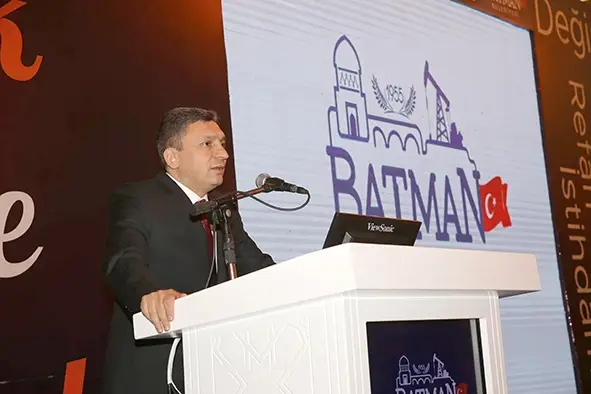 Yemek sonrası gösterilen ‘Birlikte Başardık’ tanıtım filminin ardından kürsüye çıkan Vali Şahin, “Bugün burada göreve gelişimizin 2. yılında Batman’da hayata geçirdiğimiz ve yapımı devam eden proje, hizmet ve yatırımlarla birlikte Batman için hayalini kurduğumuz, planladığımız çalışmaları siz değerli dostlarımızla paylaşmak için bir araya geldik. Doğu ve Güneydoğu Anadolu’da birçok belediyede yöneticilerin terörle irtibatı tespit edilince hukuki süreç başlatılmış ve söz konusu yöneticiler görevden alınmıştı. Cumhurbaşkanımız Sayın Recep Tayyip Erdoğan'ın sıkça vurguladığı terörle her alanda mücadele kapsamında, İçişleri Bakanımız Sayın Süleyman Soylu’nun talimatıyla hali hazırda yürüttüğümüz Batman Valiliği görevine ek olarak Batman Belediyesi’nin yönetimini de üstlendik. Tanıtım filminde bizden önceki dönemi hatırlama fırsatımız oldu. Göreve başladığımızda Belediyenin tüm kaynaklarının tüketildiğini ve elle tutulur tek bir somut proje, hizmet ya da yatırımın olmadığını gördük” dedi.