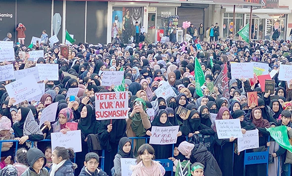 Miting alanına gelen vatandaşlar ellerinde Kur'an-ı Kerim ve tevhit bayraklarıyla İsveç şaşırma sabrımızı taşırma, Çekin biz ellerinizi Kur'an'ımızdan, yüce kitabım Kur-an’a dokunma gibi dövizler açıldı.