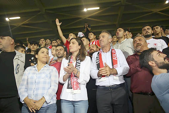 Sezonun ilk maçında Sincan Belediye Ankaraspor’u Konuk eden Batman Petrolspor maçını taraftarlarla birlikte Batman Şehir Stadyumu’nda izleyen Belediye Eş Başkanları Gülistan Sönük ve Yeşil Işık, taraftarlarını tezahürat, slogan ve marşlarına eşlik ederek Batman takımını destekledi.