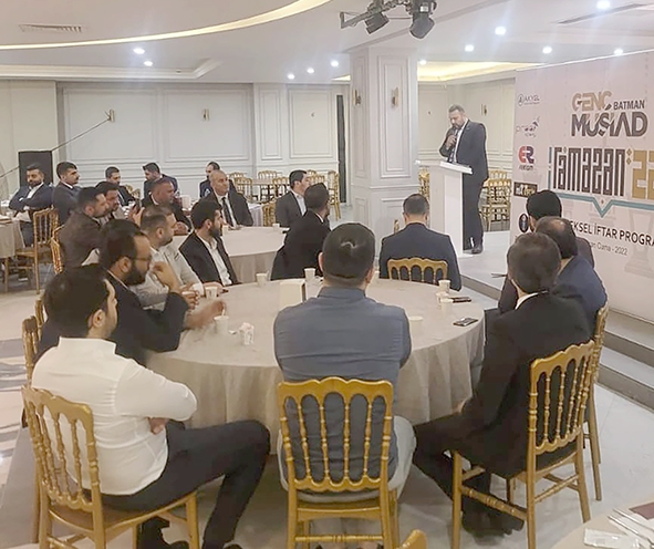 Genç MÜSİAD Batman Şubesi’nin organize ettiği iftar programına; Batman Başkan Aladdin İraz, Genç MÜSİAD Genel Başkanı Yunus Furkan Akbal, Antalya, Adana, Malatya, Elâzığ, Diyarbakır şube Başkanları, yönetimleri ve üyelerin katılımıyla iftar etkinliği düzenledi.