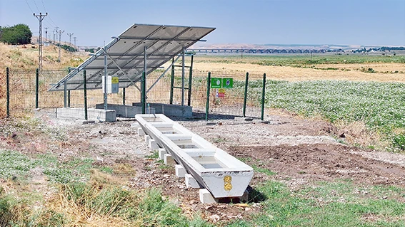 Güneş enerjisiyle çalışan su yalağı sistemi, çevre dostu ve sürdürülebilir bir yaklaşımı temsil ederken aynı zamanda köylerde yaşayan hayvanların su ihtiyacını da önemli ölçüde giderileceği belirtildi.