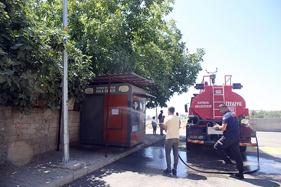 Ekmek dağıtım büfelerinin hijyenik bir şekilde vatandaşlara hizmet vermesi için ortak çalışma yapan Belediye Sosyal İşler ve İtfaiye Müdürlüklerinin büfeleri köpüklü su ile yıkayarak temizlik çalışması gerçekleştirdi.