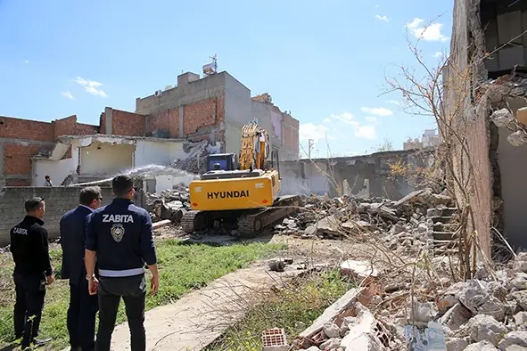 Çevrede güvenlik önlemlerinin aldığı yıkım çalışmaları sorunsuz bir şekilde gerçekleştirildi.
