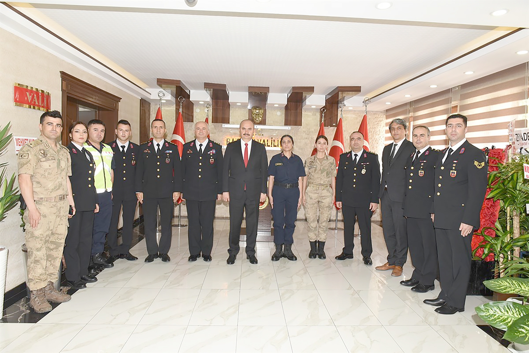 İl Jandarma Komutanı ve beraberindeki teşkilat mensuplarını kabul eden Vali Canalp, Jandarma Teşkilatı’nın kuruluş yıldönümünü kutlayarak, ilimizdeki huzur ve güven ortamının tesisinde gösterdikleri gayretlerden dolayı tüm teşkilat mensuplarına teşekkür etti.