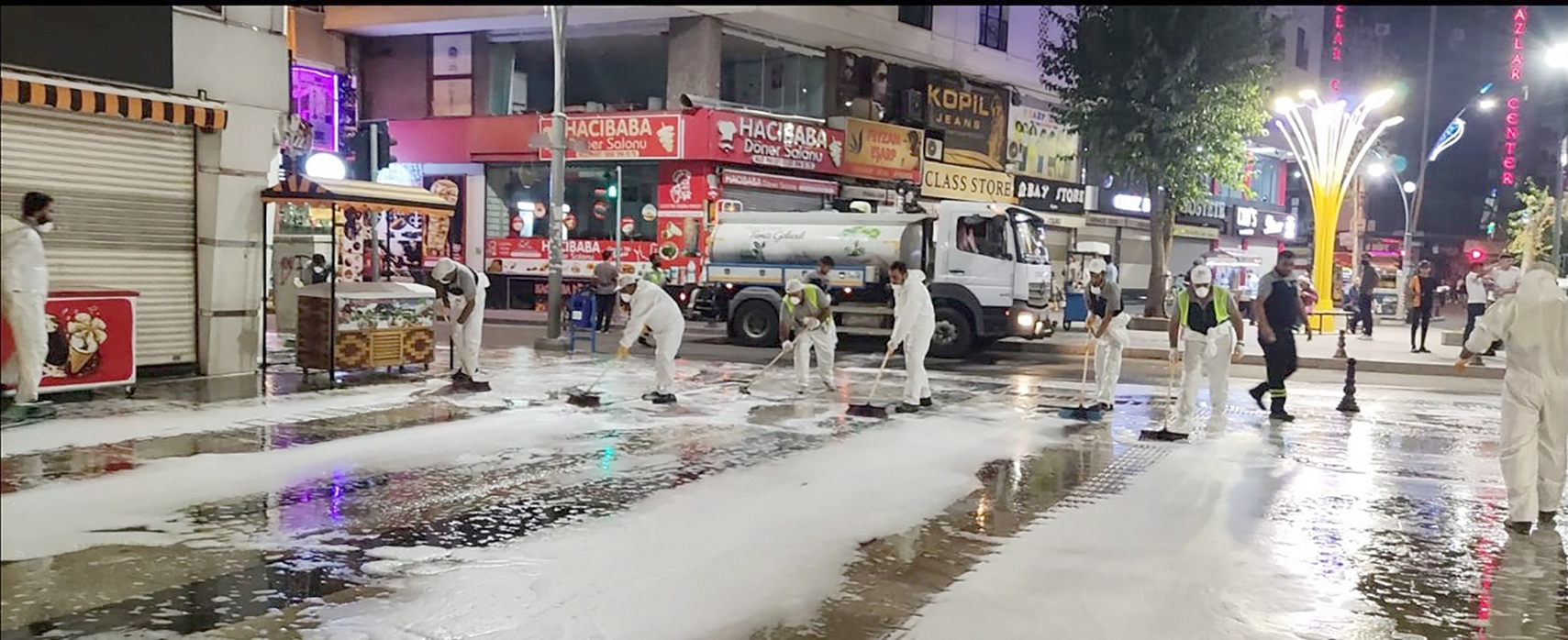 Batman Belediyesi, esnaf ve vatandaşların yoğun olarak kullandığı alanlarda gece vakti gerçekleştirdiği genel temizlik çalışmalarında; oturma bankları, çöp kutuları ile esnafların kapısının önünü yıkadı.