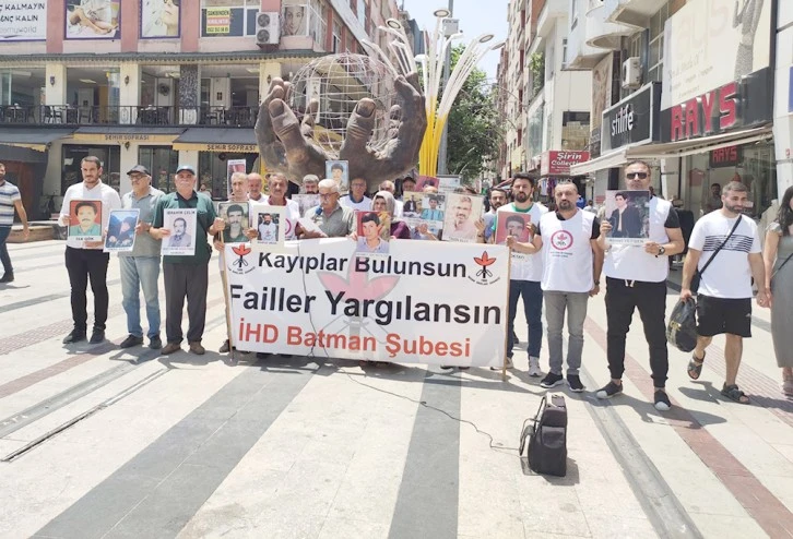 Gülistan caddesi İnsan Hakları Anıtı önünde toplanan kayıp yakınları adın basın açıklamasını İHD Batman Şube Yöneticisi Hüseyin Elçi okudu.
