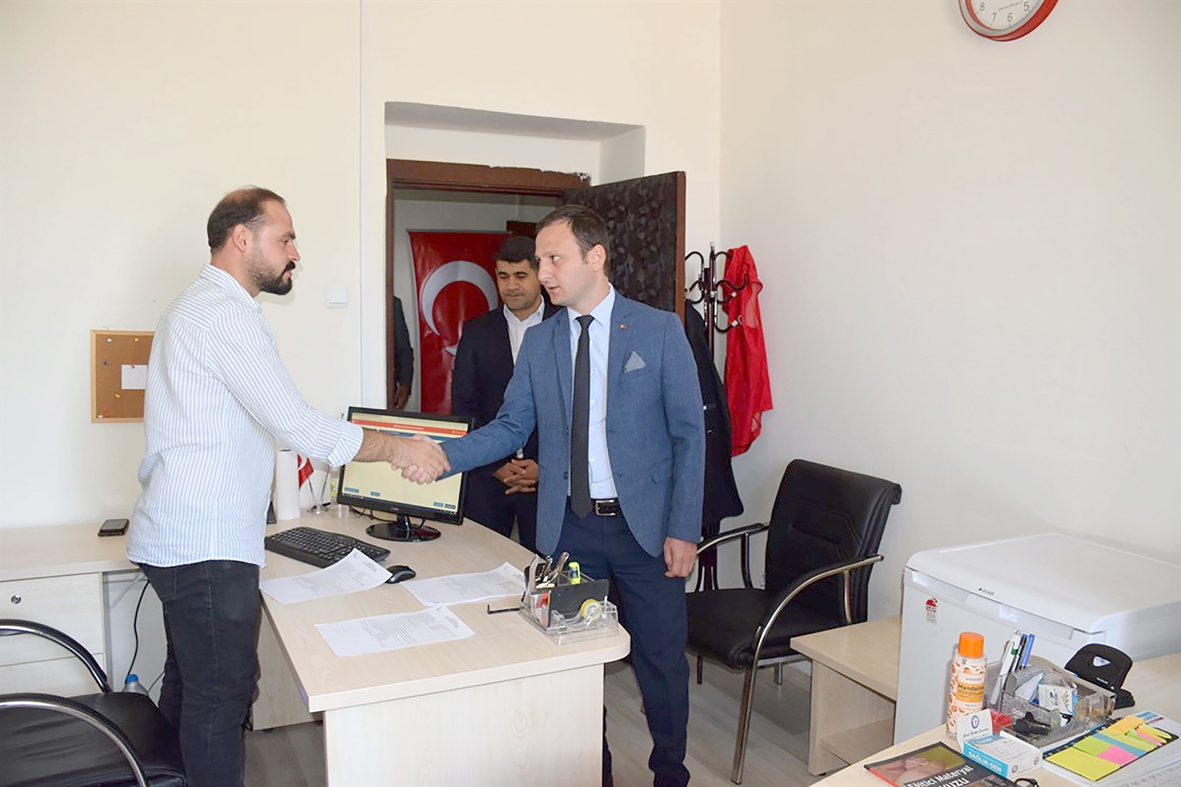 Ziyareti kapsamında Sosyal Hizmet Merkezi Müdürü Fikret Onur Elma ve Sosyal Yardımlaşma ve Dayanışma Vakfı Müdürü Nurullah Araz’dan kurum çalışmaları hakkında bilgi alan Kaymakam Güngör mesai arkadaşlarına görevlerinde kolaylıklar diledi.