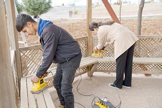 Ahşap yapıların düzenli olarak bakımının yapılması, kaynak israfının önüne geçerken doğal dengenin korunmasına da yardımcı oluyor. Bu süreçte öğrenciler, malzemenin en verimli şekilde nasıl kullanılacağını, doğru bakım yöntemlerini ve geri dönüşümün önemini öğrenerek sürdürülebilirlik bilinci kazanıyor.