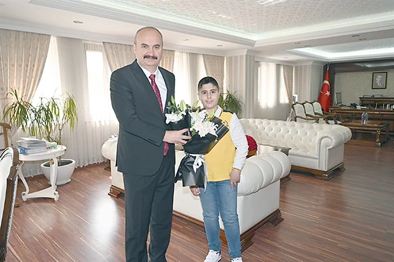 Makamında temsili Vali ve beraberinde İl Milli Eğitim Müdürü Yaşar Ciğer, öğrencinin öğretmenleri Murat Üney ve Özge Yılmaz Ökçü’yü ağırlayan Vali Canalp, ziyaretlerinden dolayı kendilerine teşekkür etti.