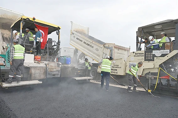 Kentin ulaşım problemlerini önümüzdeki 50 yıllık perspektifle trafik sorunun çözmek için şehri dört bir yanda saracak yol ağının ilk ayağı olan Kuzey Batı Çevre Yolunda incelemelerde bulunan Vali Ekrem Canalp, finişerlerin başına geçerek yolun ilk asfalt serimini yaptı.