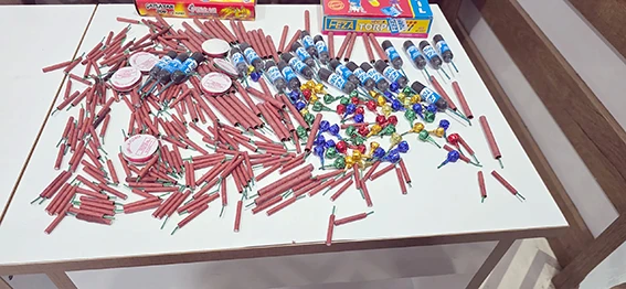 Denetimler sırasında ele geçirilen ürünler: 24 adet feza torpil, 112 adet çatlayan top, 133 adet patlayan kibrit, 90 adet patlar torpil, 14 adet gamelya çiçeği, 50 adet kız kovalayan