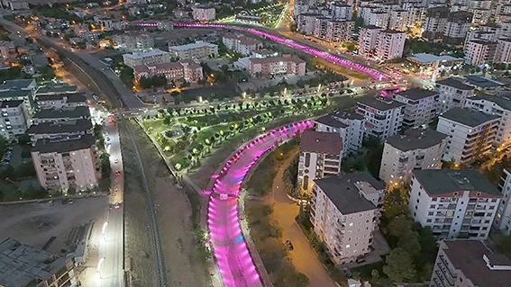Belediye Sağlık İşleri Müdürlüğü ile Park ve Bahçeler Müdürlüğü iş birliğiyle gerçekleştirilen çalışma kapsamında, şehir merkezindeki dekoratif aydınlatmalar pembe renge çevrildi. Bu görsel farkındalıkla, meme kanserinde erken teşhisin hayati önemi bir kez daha vurgulandı.
