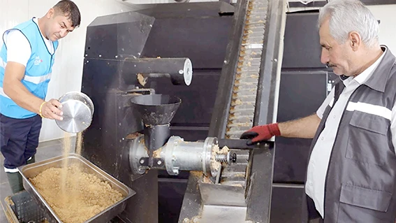 Doğu ve Güneydoğu Anadolu Bölgesi’nin en büyük Hayvan Bakım, Tedavi ve Rehabilitasyon Merkezi bünyesindeki modern tesislerde, toplanan artık yemekler ve bayat ekmekler sterilize edilip pişirilerek katkısız, yüksek proteinli kedi ve köpek mamasına dönüştürülüyor.