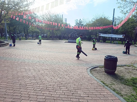 Kentin önemli sosyal alanlarından biri olan parkta gerçekleştirilen kutlamaların tamamlanmasının ardından harekete geçen belediye ekipleri, çevrede kapsamlı temizlik çalışması yürüttü.