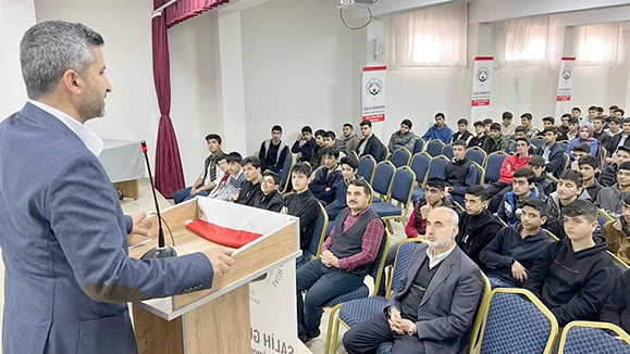 Ders öncesi okula ismini veren Salih Günaydın'ın öğrencisi olduğuna söyleyen Öğretim Üyesi Tür, kendisinin de bir imam hatip lisesi mezunu olduğunu ifade ederek hayat hikayesinden ve deneyimlerinden örnekler verdi.