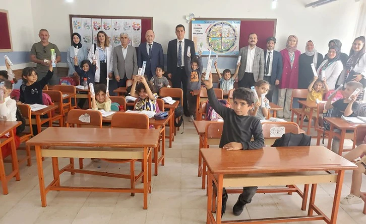 Tarama programına eşlik eden İl Sağlık Müdürü Uz.Dr.Semih Canpolat ve İl Milli Eğitim Müdürü Mahmut Kurtaran öğrencilere diş macunu ve dil fırçası hediye etti.