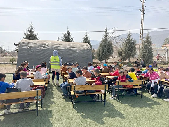 Gaziantep ili İslâhiye ilçesinde Milli Eğitim Bakanlığı tarafından kurulan eğitim çadırlarında görev yapan öğretmenler depremden etkilenen öğrencilerimizin eğitimlerinin aksamaması adına ‘Her Şart Altında Eğitime Devam’ anlayışıyla fedakârca çalışmaya devam ediyorlar.