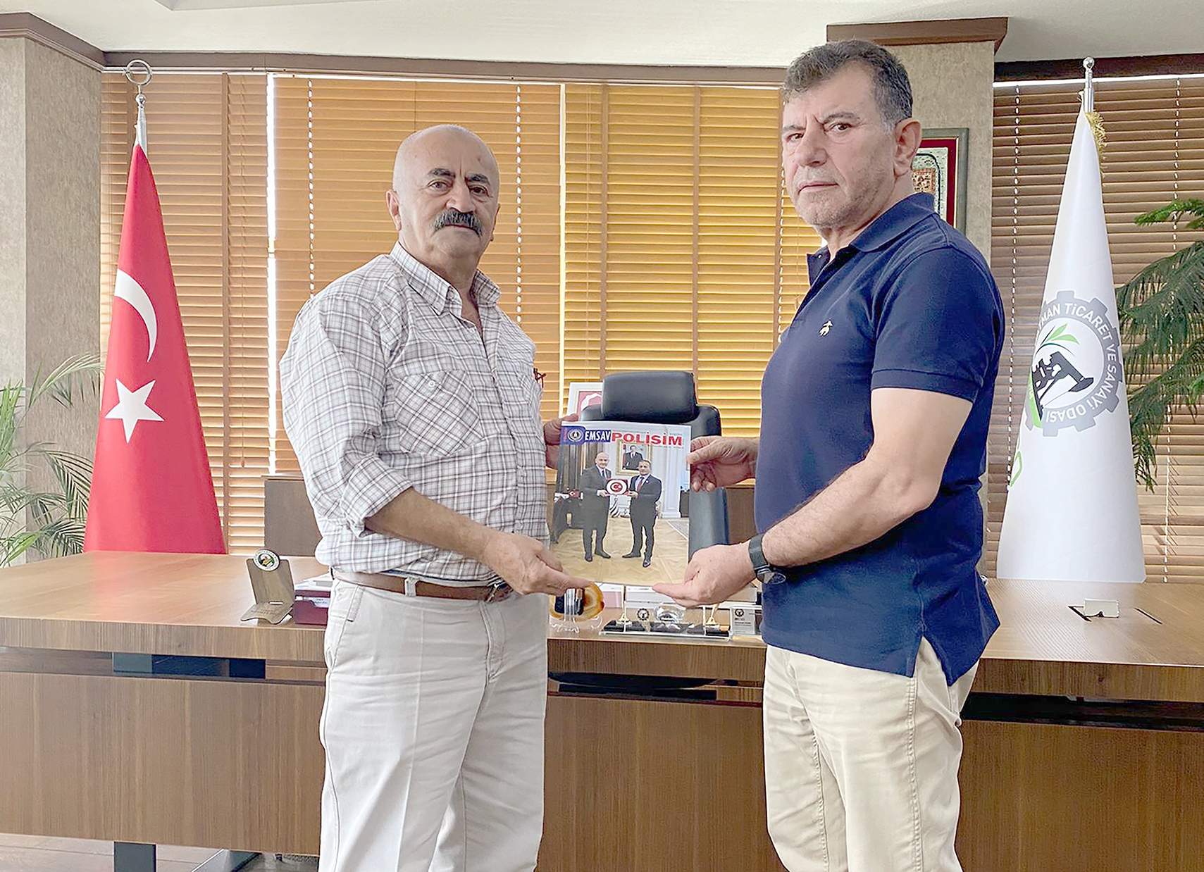Batman Ticaret ve Sanayi Odasının çalışmalarıyla ilgili olarak bazı bilgiler alan Okay, BATSO’nun Batman sanayisinin güçlenmesi ve gelişiminde büyük katkıları olduğunu dile getirdi ve EMŞAV‘ın aylık dergisini Başkan Demir’e hediye etti.