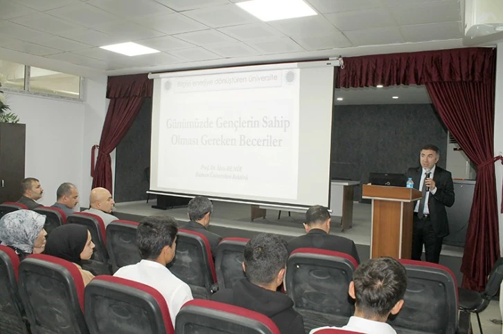 Günümüzde sahip olunması gereken becerilerin öğrenme ve yenilik becerileri, yaşam ve kariyer becerileri, bilgi, medya ve teknoloji becerileri ana başlıkları altında toplandığı bilgisini aktaran Rektör Demir, bu başlıklar hakkında ayrıntılı bilgiler paylaştı. Sadece beceri kazanmanın hayatı göğüslemeye yetmeyeceğini belirten Rektör Demir, becerilerle birlikte insanın evrensel, yerel, maddi, manevi, mesleki, ahlaki, milli tüm değerleri kapsayan ve kuşatan bir olgunlaşma, gelişme, ilerleme ve değişimle de donanması gerektiğini vurguladı.