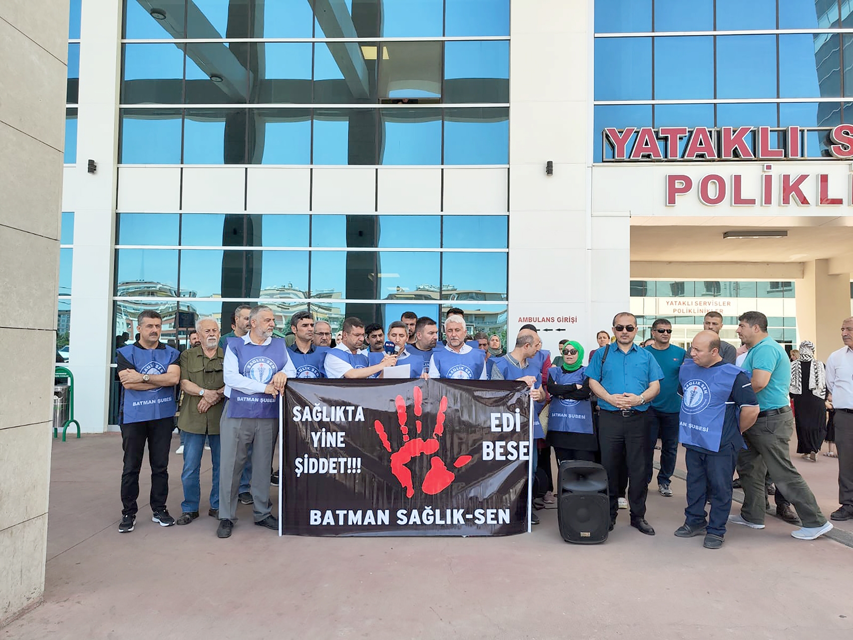 Sağlıkçılar adına basın açıklaması yapan Sağlık Sen Batman Şube Başkanı Maruf Yalçın “Hekiminden hemşiresine, teknisyeninden memuruna sağlık çalışanlarının onlarca sorunu bulunuyor. Ancak hiçbiri can güvenliği kadar sağlık kuruluşlarında kol gezen şiddet kadar can yakıcı değil... Can güvenliği sağlanmadığı için, yeterli tedbir alınmadığı için, Ekrem Hocamızın örneğinde olduğu gibi canımız yanıyor, isyan ediyoruz. Bazen yaralanıyoruz, bazen hakaret, küfür ve tehditlere maruz kalıyoruz... Bazen sinip içe kapanıyoruz, meslekten soğuyoruz. Ve hatta çekip gidiyoruz. Tüm bunların yanı sıra ise her daim korku halinde yaşıyoruz. Buradan soruyoruz: Böyle bir ortamda kutsal sağlık mesleğini nasıl aşk ve şevkle icra edelim?