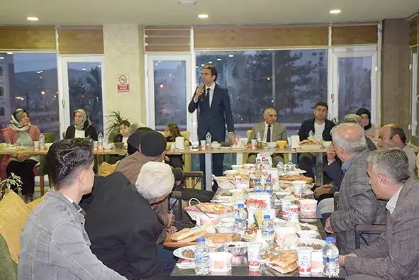 Yemek sonrası Şehit Yakınları ve Gazilere hitap eden Kaymakam Güngör “Ülkemizin bağımsızlığı, birliği ve bütünlüğü uğruna canlarını feda eden aziz şehitlerimizin yakınları ve kahraman gazilerimiz için düzenlediğimiz bu iftar yemeğine katılımınızdan dolayı öncelikle hepinize hoş geldiniz diyorum. Aziz şehitlerimizin ve kahraman gazilerimizin değerli aileleri, Sizler, aziz şehitlerimizin bizlere hatırası ve yadigârısınız. Devletimiz ve milletimiz, sizlerin kıymetini, değerini her zaman bilecek, hiçbir zaman unutmayacaktır. Çünkü sizler en değerli varlıklarınızı vatan için, bu millet için feda ettiniz. Sözlerimi tamamlarken vatanımızın bölünmez bütünlüğü ve birliği için can veren bütün şehitlerimizi rahmet ve minnet duygularımla anıyorum. Hepsinin ruh şad olsun. Gazilerimize de şükranlarımı sunuyor, hayatlarının geri kalanında uzun ve sağlıklı bir ömür diliyorum” dedi.