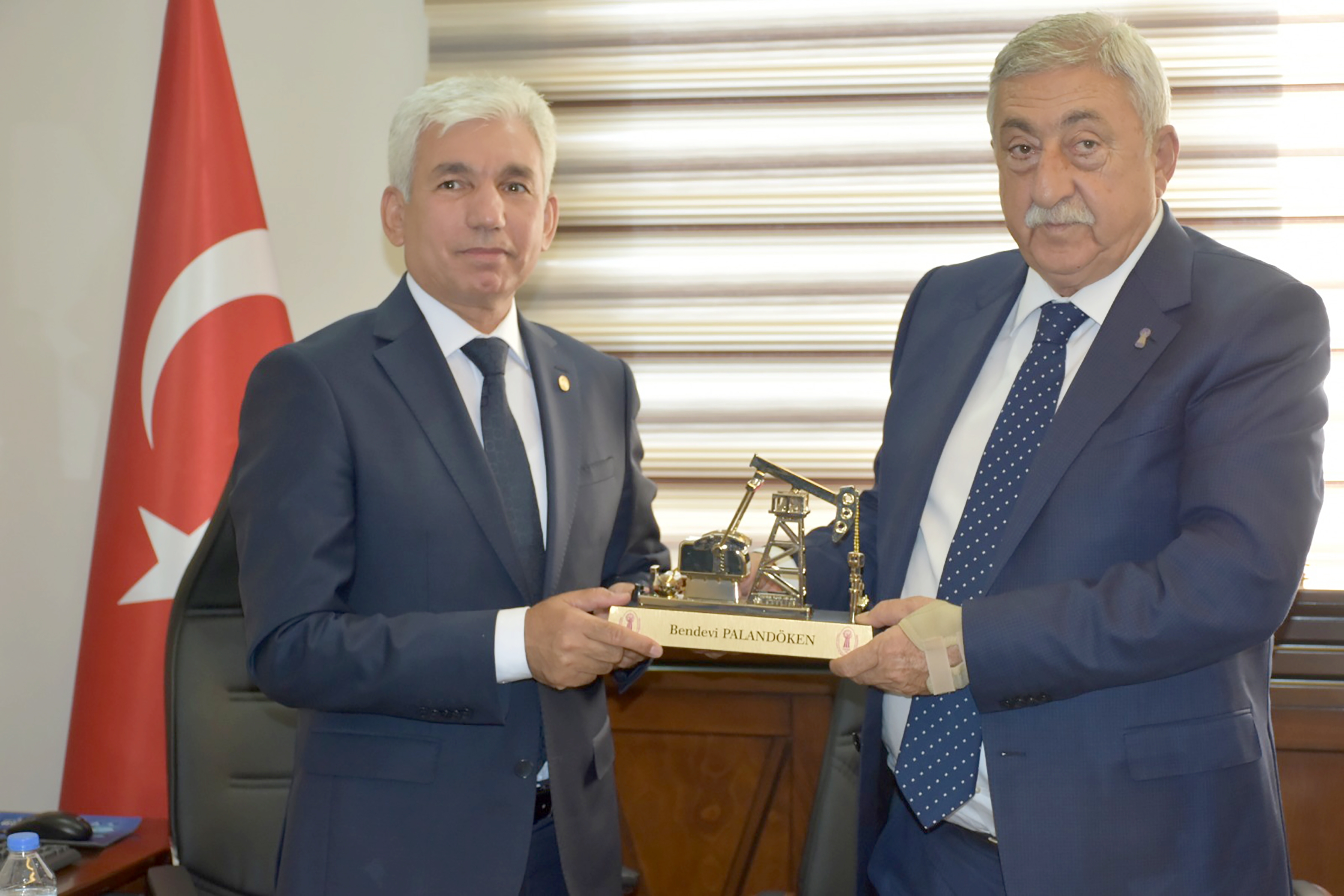 Esnaf Odaları Birliğini ziyaret eden TESK Genel Başkanı Bendevi Palandöken ve beraberindeki heyeti Odalar Birliği Başkanı Mehmet Salih Kaplan ve yönetim kurullu üyeleri karşıladı.
