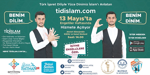 Batman Valiliği ve Batman Belediyesi öncülüğünde Batman İl Özel İdaresi, Batman Müftülüğü ve Batman İşitme Engelliler Eğitim Kültür Gençlik ve Spor Kulübü Derneği iş birliği ile hayata geçen projenin lansmanı 13 Mayıs Cuma günü saat 14.00’da Ahmet Güneştekin Kültür ve Sanat Merkezi’nde gerçekleştirilecek.