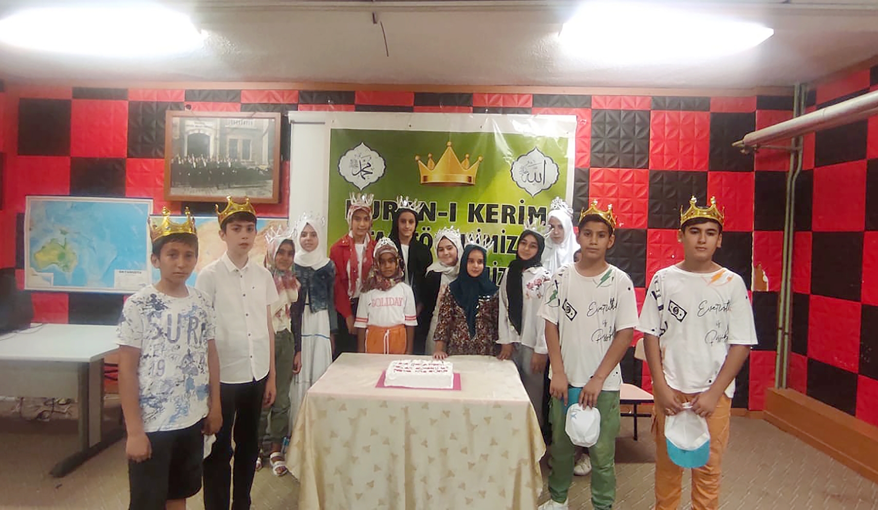 Borsa İstanbul Belde Ortaokulu'nda TÜGVA Yaz Okulları kapsamında ders alıp Kur'an'ı Kerim'e geçen 13 öğrenci için Taç Töreni düzenlendi.