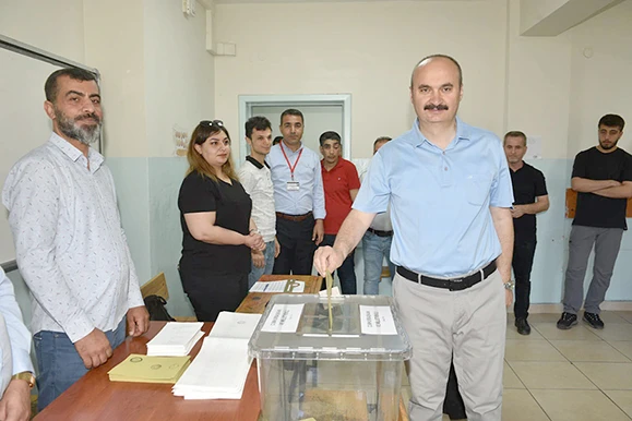 Batman Valisi ve Belediye Başkan Vekili Ekrem Canalp ve Eşi Dr. Ayten Canalp, Kültür Mahallesi Milli Eğitim Vakfı Ortaokulu’nda kurulu 1364 numaralı sandıkta oyunu kullandı.