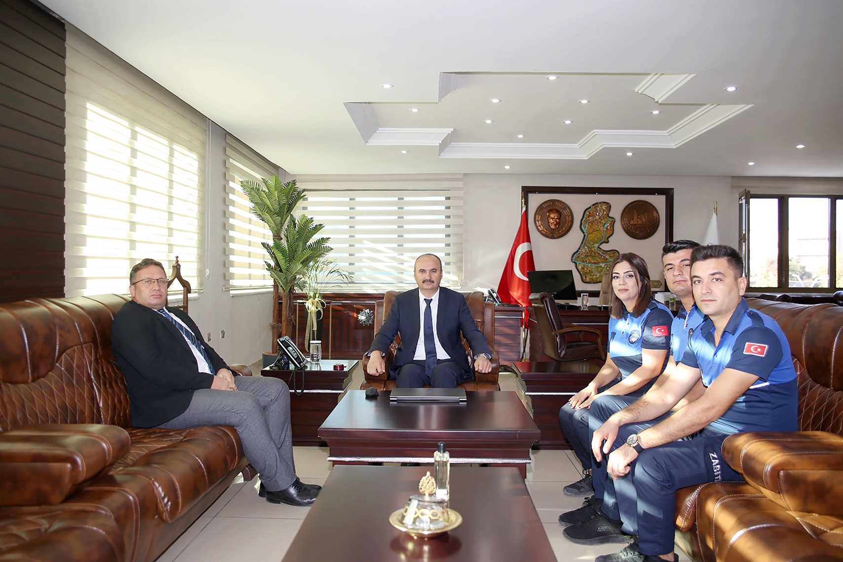 Her yıl 1-7 Eylül tarihleri arasında kutlanan Zabıta Haftası dolayısıyla Batman Belediyesi Zabıta Müdürlüğü personeli, Batman Valisi ve Belediye Başkan Vekili Ekrem Canalp’i belediyedeki makamında ziyaret ederek çiçek takdim etti.