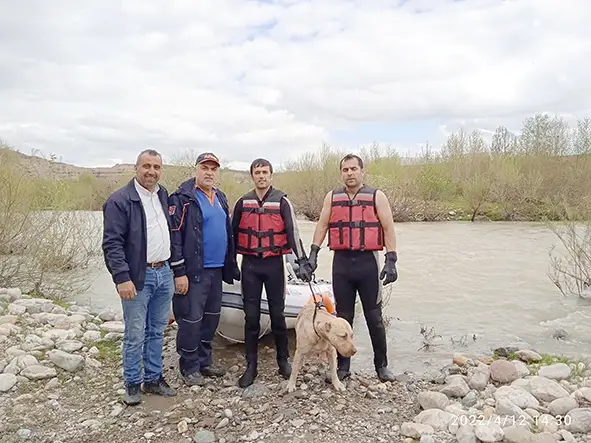 Köpek kurtarma operasyonunda Batman Belediyesi İtfaiye Müdürlüğü 3 kişilik dalgıç ekiple köpeği bulunduğu yerden kurtarıp köy halkına teslim etti.