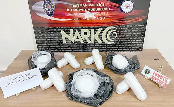 Yapılan çalışmalar ve araştırmalar hakkında bilgi veren Batman İl Emniyet Müdürlüğü “Narkotik Suçlarla Mücadele Şube Müdürlüğümüze bağlı ekiplerce, 8 Mart 2023 günü yurtdışından ilimize uyuşturucu madde getiren TIR üzerinde yapılan operasyon neticesinde; tırın dorse kısmında çanta içerisine gizlenmiş, 11 şeffaf pakete sarılı halde, 7 kilo 65 gram Metamfetamin maddesi ele geçirilmiştir.