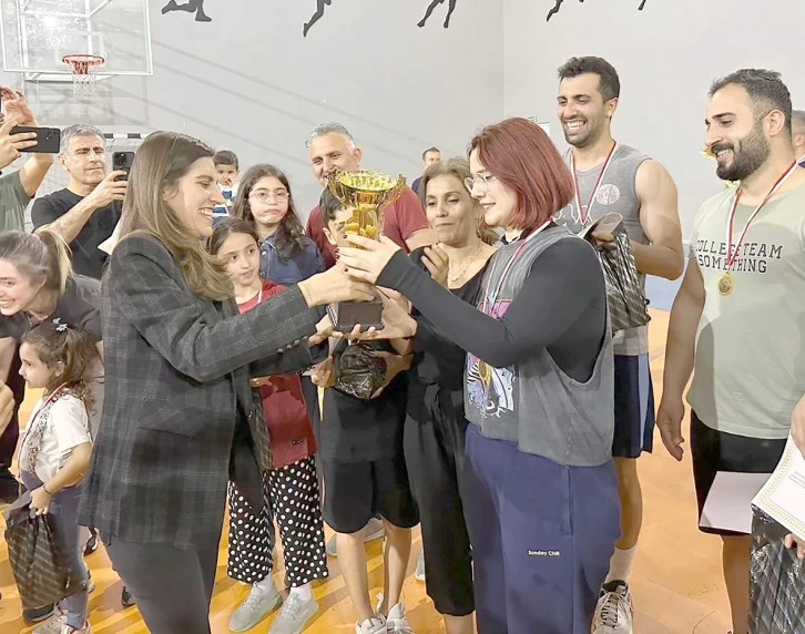 Batman Belediyesi Eş Başkanı Gülistan Sönük, okullar arası düzenlenen voleybol turnuvasının final maçında rakibini yenerek şampiyon olan Selahaddin Eyyubi Anadolu Lisesi voleybol takımına şampiyonluk kupasını verdi.