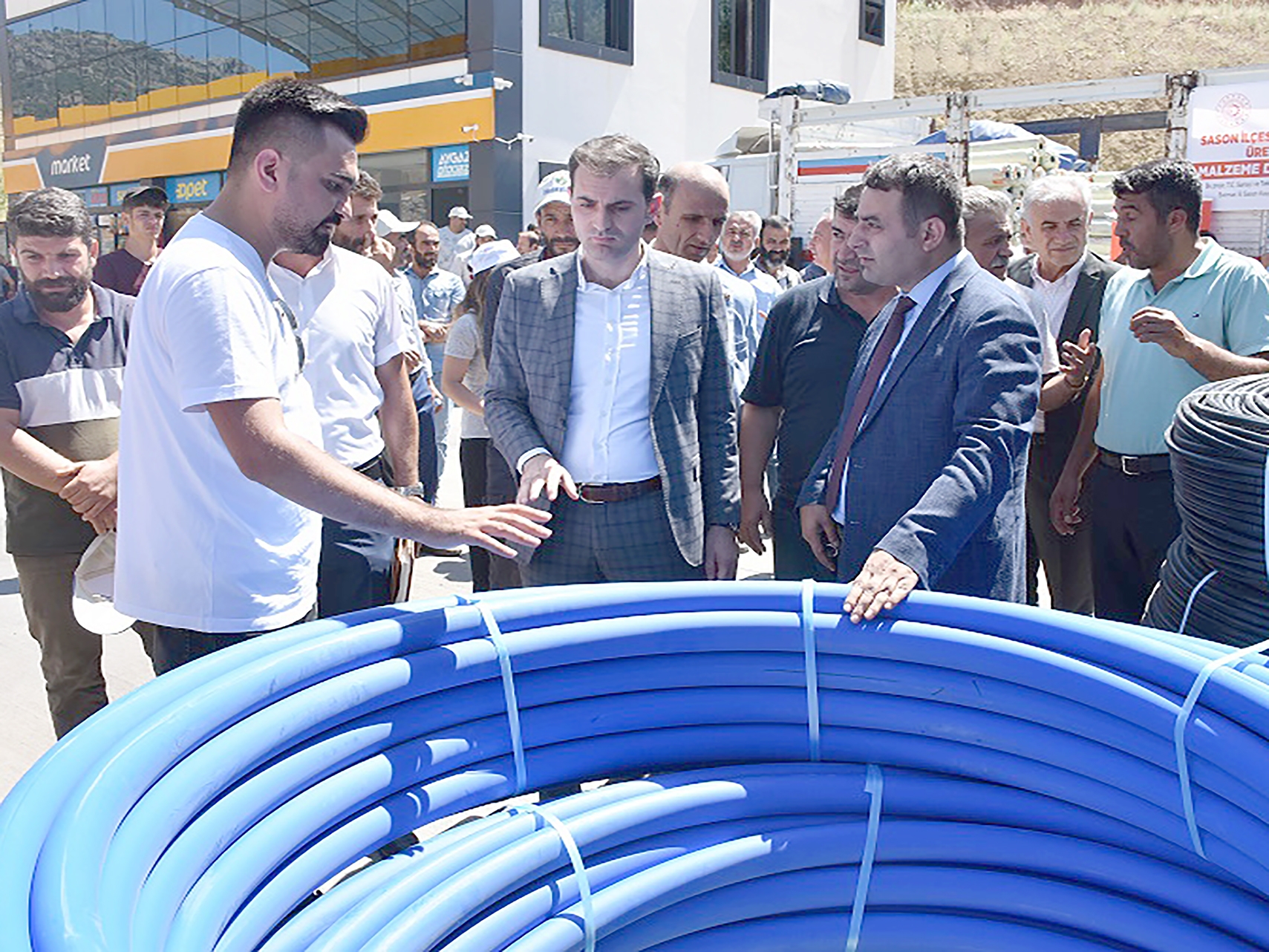 Malzeme dağıtımına, Kaymakam Murat Mete, İl Genel Meclis Üyesi İsmet Çelik, İl Genel Meclis Üyesi Yahya Karabaş, Tarım ve Orman İlçe Müdürü Eyüp Aktaş, KHGB Müdürü Şeyhmus Çoşkun, Batman Tarım Kredi Kooperatif Başkanı Adnan İnanç, İMC Plastik Güneydoğu Anadolu Bölgesi Koordinatörü Burak Han Korucu katıldı.