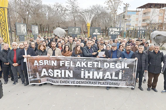 Emek ve Demokrasi Platformu, depremlerin yıldönümünde Yılmaz Güney Sergi Alanı’nda basın açıklaması düzenledi. Platform adına açıklamayı TMMOB İKK Sekreteri Şahin Bavli okudu. Açıklamada, 6 Şubat depremlerinde yaşamını yitirenler anılırken, yaşanan yıkımın bir kader ya da doğal afet olmadığı, bilim dışı kentleşme, rant politikaları ve denetimsizlik sonucu meydana geldiği vurgulandı. Depremin on binlerce insanın yaşamını yitirmesine ve milyonlarca yurttaşın hayatını köklü biçimde etkilemesine rağmen yıkımın gerçek boyutlarının şeffaf biçimde açıklanmadığı belirtilerek, imar afları ve denetimsiz yapılaşmaya dikkat çekildi.