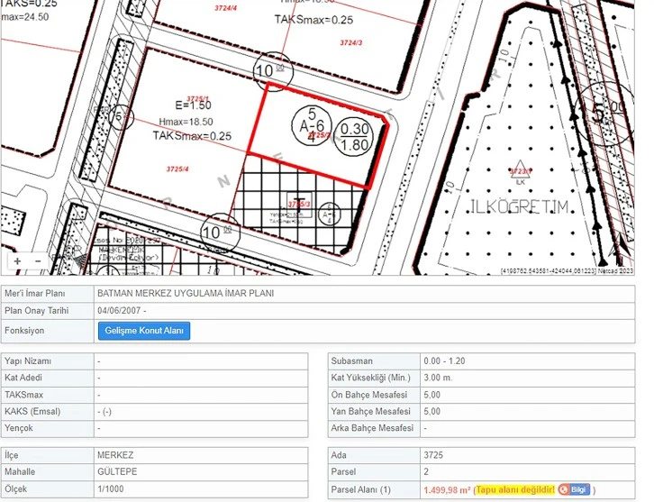 Batman Belediyesi resmi web sayfasında yer alan E-İMAR bölümünün tıklanması ile Adres Bilgileri bölümünde yer alan; ‘Mahalle’, ‘Sokak’, ‘Kapı No’, ‘Ada’ ve ‘Parsel’ bilgilerini doğru yazmaları halinde, imarla ilgili tüm kayıtlı bilgilere rahatlıkla ulaşabilecek.