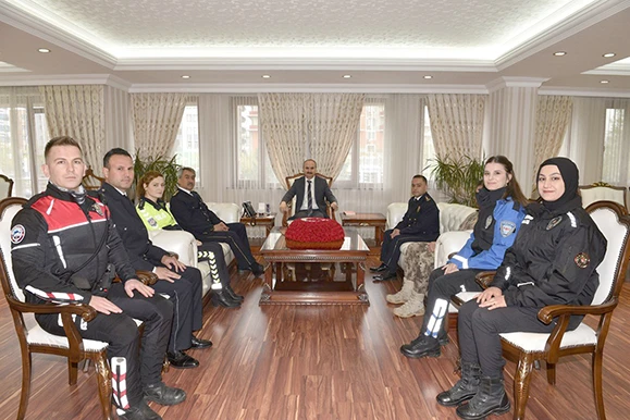 İl Emniyet Müdürü ve beraberindeki emniyet mensuplarına ziyaretlerinden duyduğu memnuniyeti belirten Valimiz, Türk Polis Teşkilatı’nın 178. Kuruluş Yıl Dönümünü ve Polis Haftası’nı kutlayarak, tüm emniyet mensuplarına sağlık, mutluluk ve başarılar diledi.