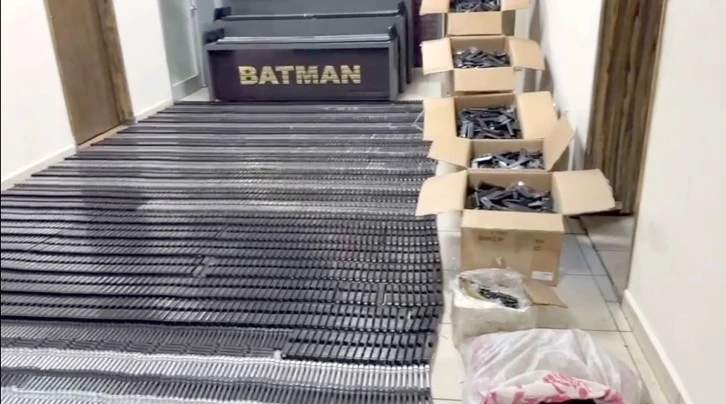 Silah imalatında kullanılan; 3540 Adet Siyah Renkli Şarjör, 1640 Adet Siyah Renkli Sürgü Kapağı, 840 Adet Gri Renkli Sürgü Kapağı, 1020 Adet Siyah Renkli Namlu, 600 Adet Gri Renkli Namlu, 750 Adet Tek Dişli Tetik, 2700 Adet Çift Dişli Tetik, 550 Adet Tetik Mekanizması, 1600 Adet Horoz Mandal Yayı, 250 Adet Sürgü Tutucu Pim, 650 Adet İcra Mili Aparatı, 900 Adet İcra Mili, 3850 Adet Tetik Mekanizması Sabitleyicisi, 500 Adet Tetik Emniyet Kilidi, 60 Adet İcra Mili Sabitleyicisi, 22500 Adet Yay, 12500 Adet Sabitleme Pimi, 1200 Adet Emniyet Mandal Pimi ele geçirilmiş olup 1 şüpheli hakkında 6136 Sayılı Ateşli Silahlar ve Bıçaklar ile Diğer Aletler Hakkında Kanuna Muhalefet suçundan adli tahkikata başlanılmıştır” denildi.