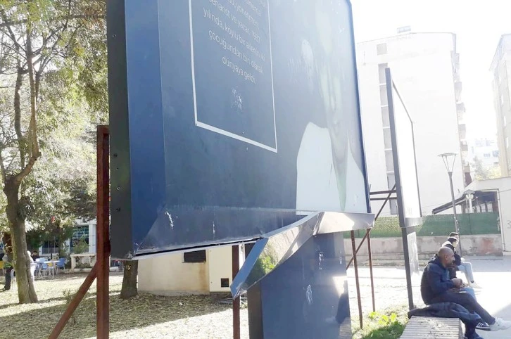 Yılmaz Güney Parkında bulunan fotoğraf çerçevelerine kenarları sokup zarar verildi.
